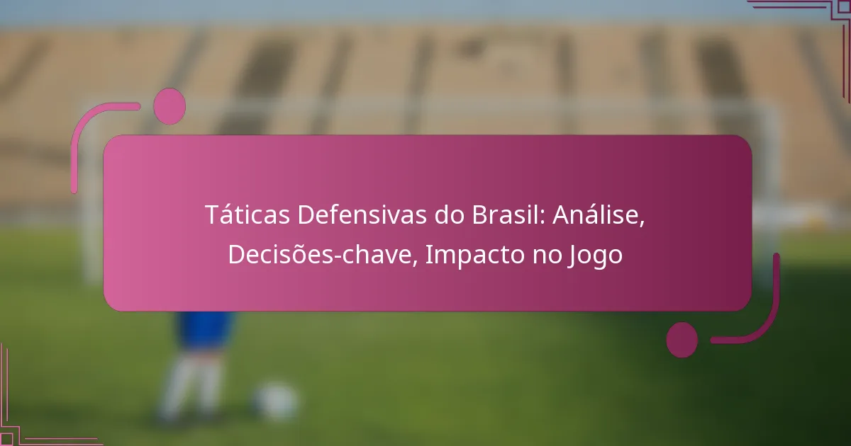 As táticas defensivas do Brasil no futebol são caracterizadas por formações estruturadas e papéis estratégicos dos jogadores que permitem uma defesa resiliente e adaptável. Decisões-chave tomadas pelos treinadores, incluindo ajustes táticos e substituições, desempenham um papel crucial na moldagem do desempenho da equipe contra diversos adversários. A eficácia desta defesa depende de uma comunicação forte, habilidades individuais e da capacidade de responder a diferentes condições de jogo.