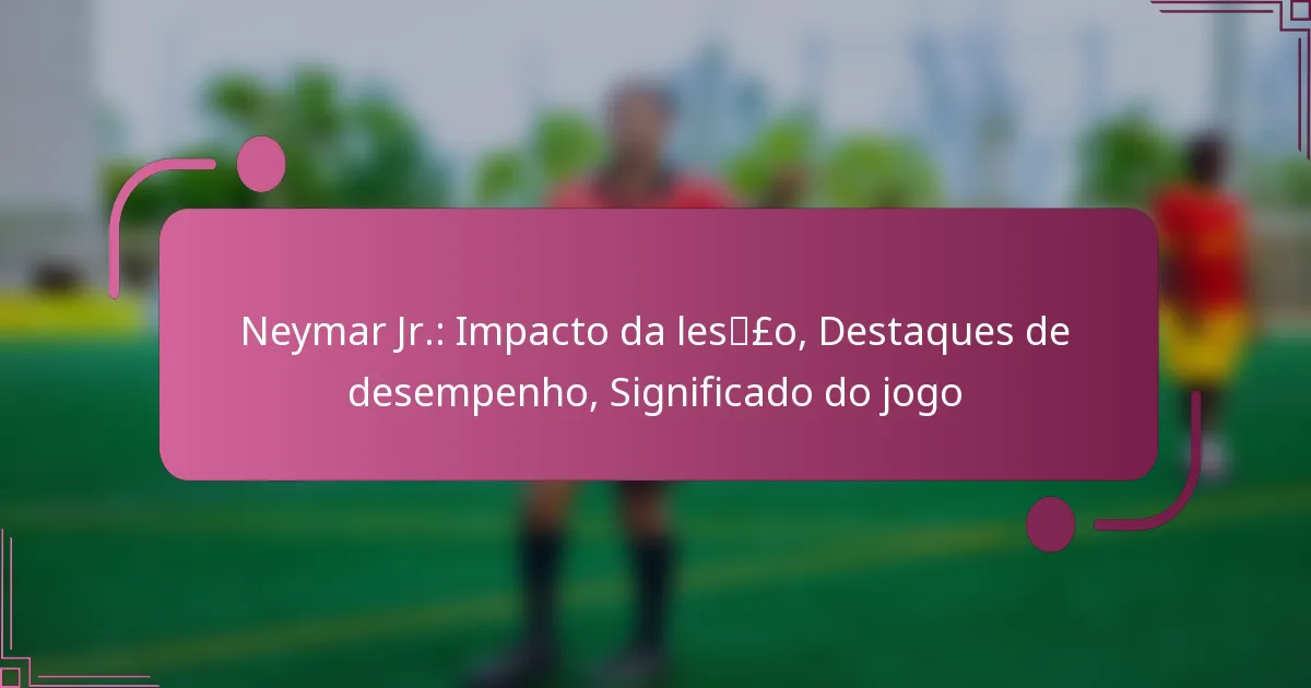 As lesões de Neymar Jr. afetam significativamente o seu desempenho e a sua condição física em jogos, levando frequentemente a períodos de recuperação prolongados e impactando as suas contribuições em campo. Estas lesões não só dificultam as suas capacidades físicas, mas também têm efeitos psicológicos que podem influenciar o seu jogo global.